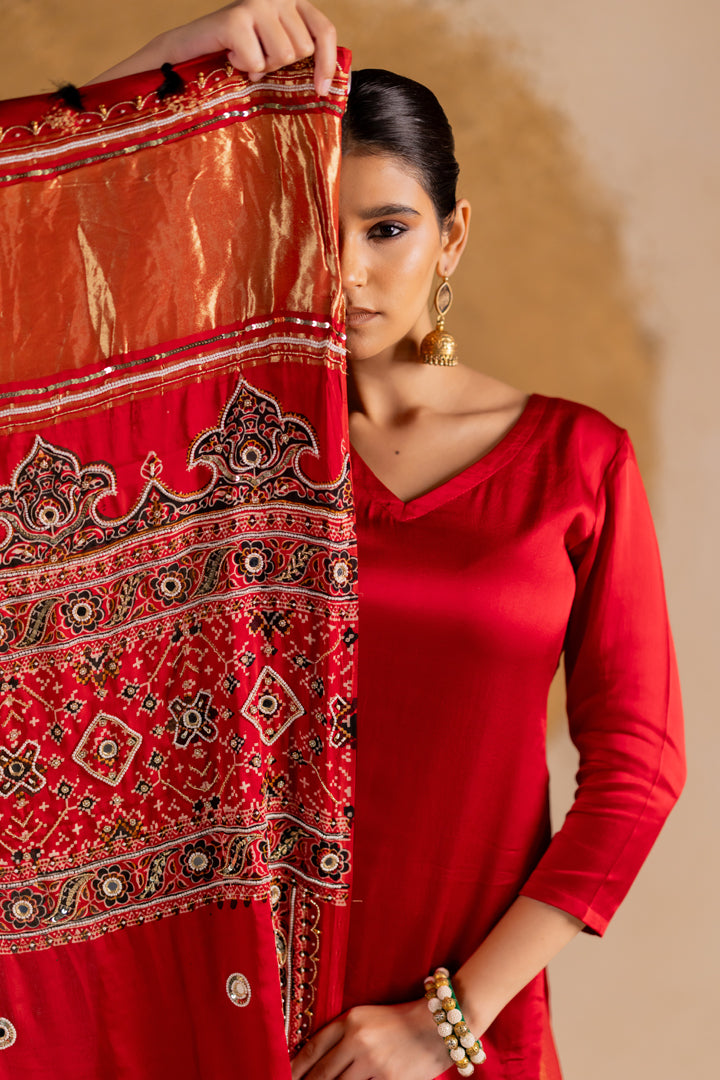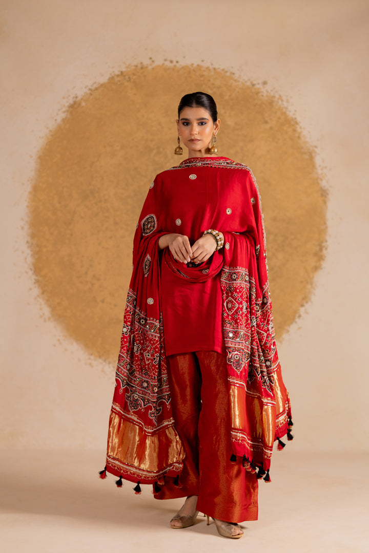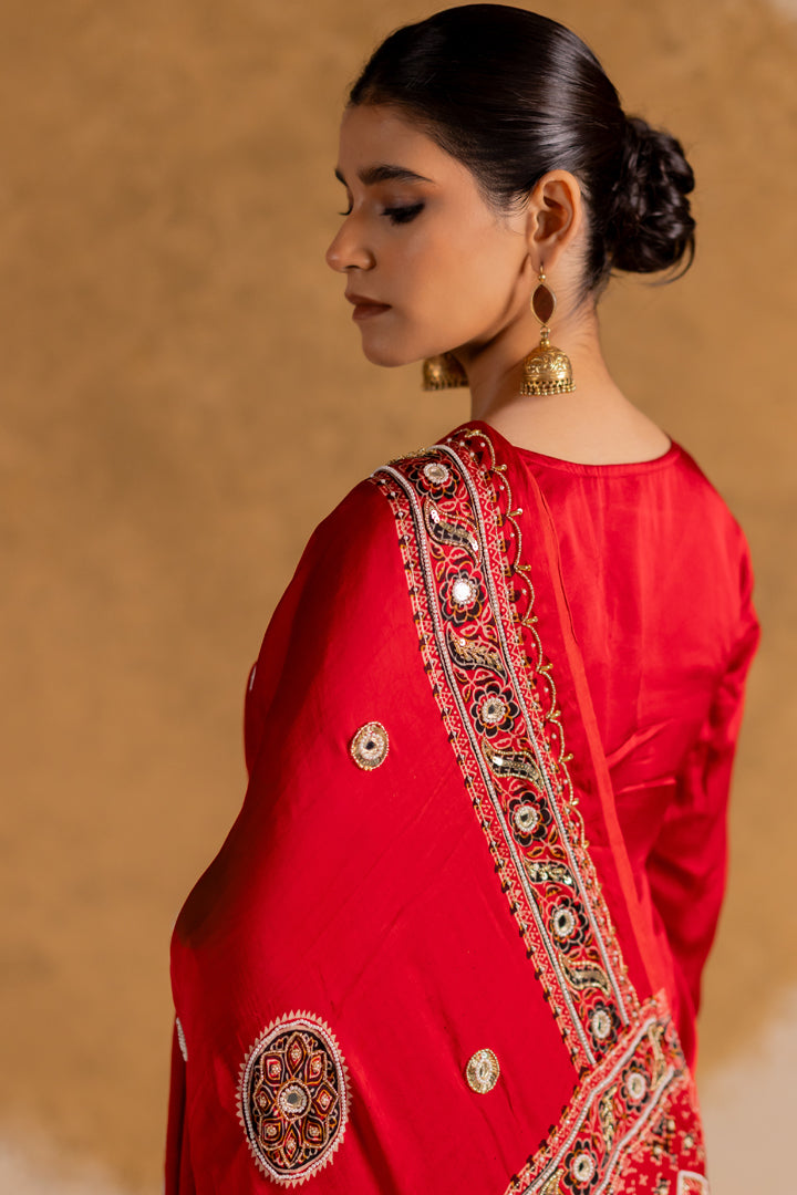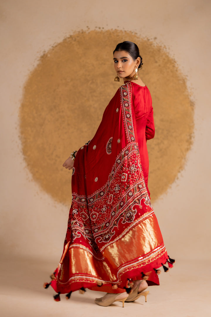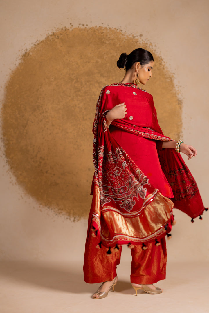 Ajrakh Bandhani Dupatta Suit Set Madder Red