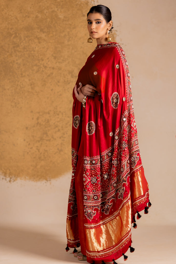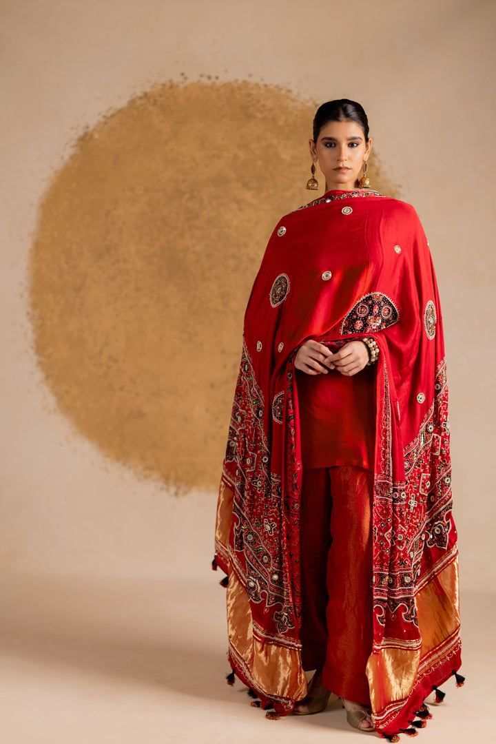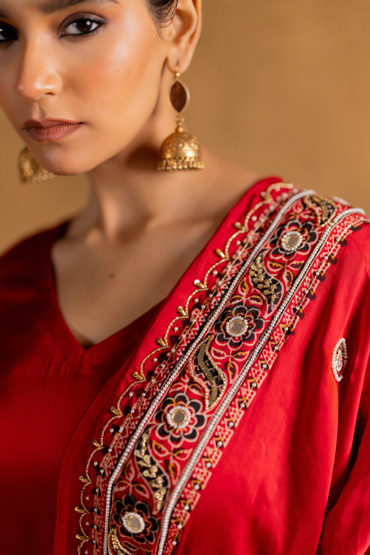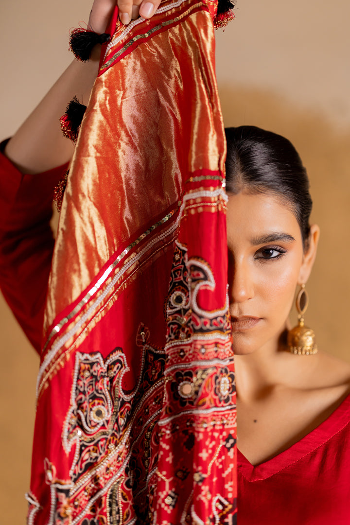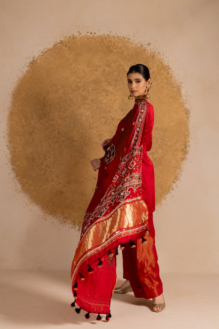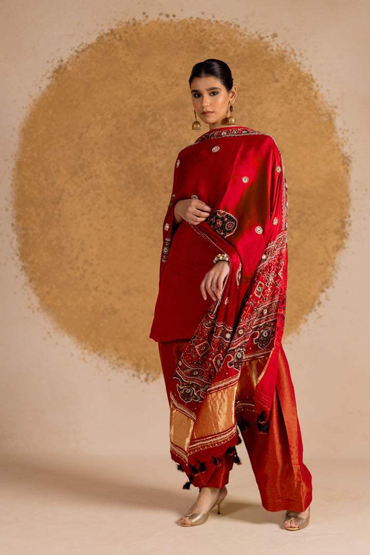 Ajrakh Bandhani Dupatta Suit Set Madder Red